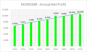 MIKROMB现在的PE = 16.45,虽然偏高。但是以长期的角度来看,只要公司的盈利保持着每年20%的成长,未来的表现还是值得期许的。