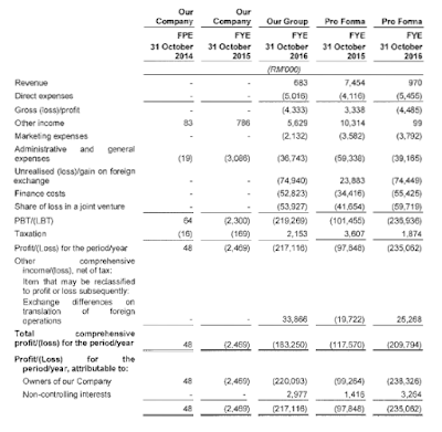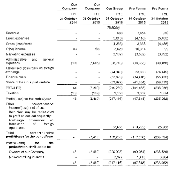在招股书的第17页里的损益表,该公司自2014至2016年间,并无任何获利。