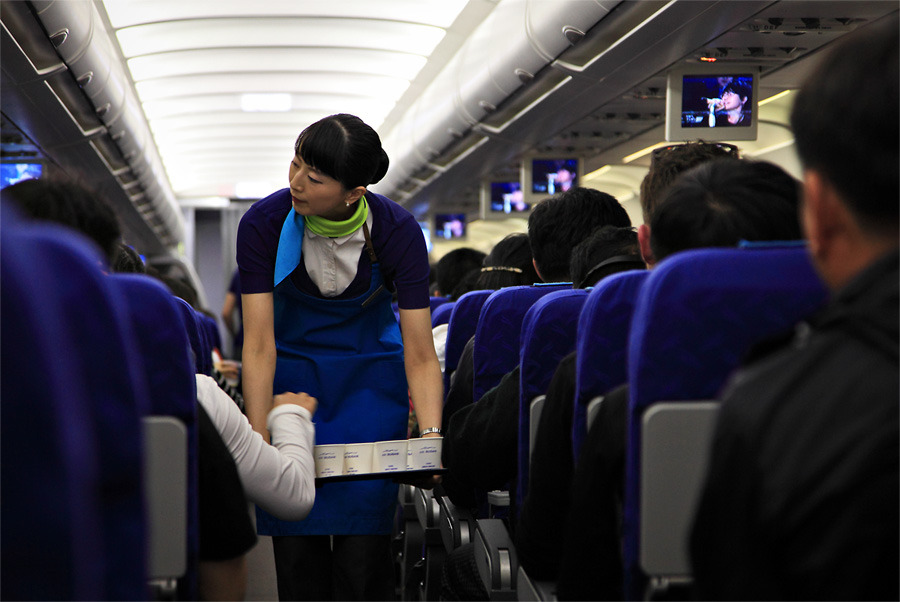 韩国的空姐, 飞内陆航班的, 才yeah~~