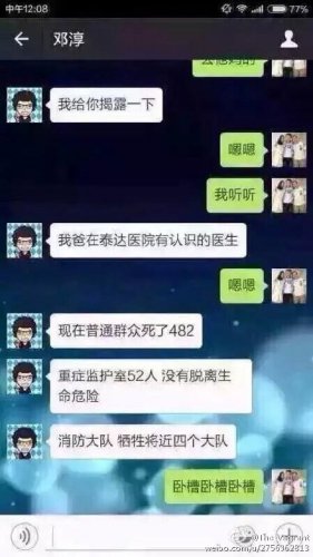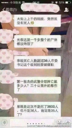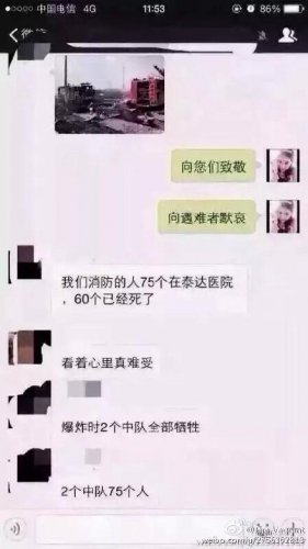 ●回塘沽看到,連醫院的太平間都有車排隊。我只想說,新聞上的那個死亡人數加個零吧!總是欺騙公眾