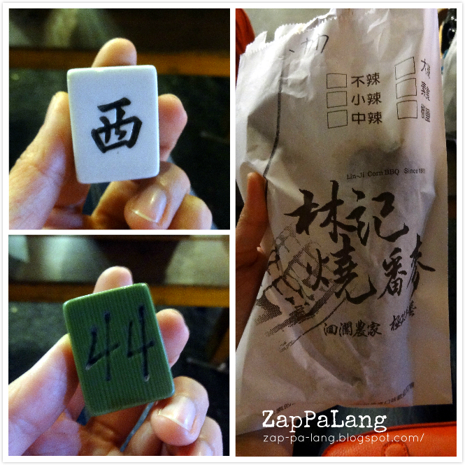 顾客们首先必须选出自己想要的玉米,交给柜台人员秤重量,并注明想要的口味,然后付钱。付钱后就会拿到一颗麻将,后面刻了号码,这还真妙啊!