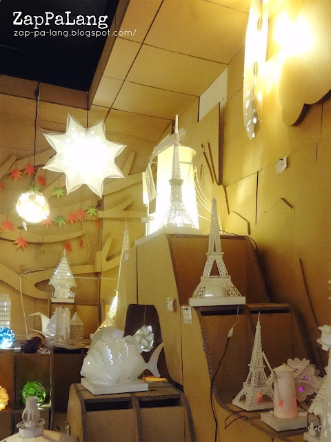 纸箱王里面展示了很多由纸张或厚纸皮制作出来的手工艺品,甚至连纸做成的包包和鞋子都有呢!呃~ 这让我想到清明节了。。。