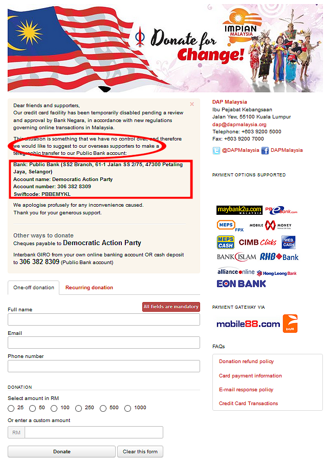 Menariknya semua sumbangan secara online disalurkan ke akaun DAP Malaysia, iaitu DAP pusat. Bukannya ke akaun DAP Sarawak!