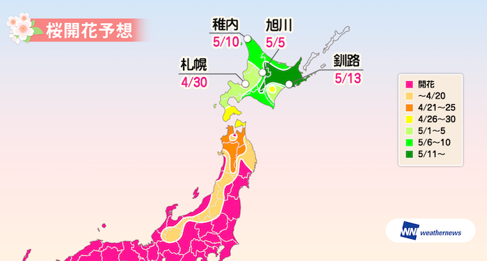 注意:天氣和櫻花是很難預測的。這純粹僅供參考。