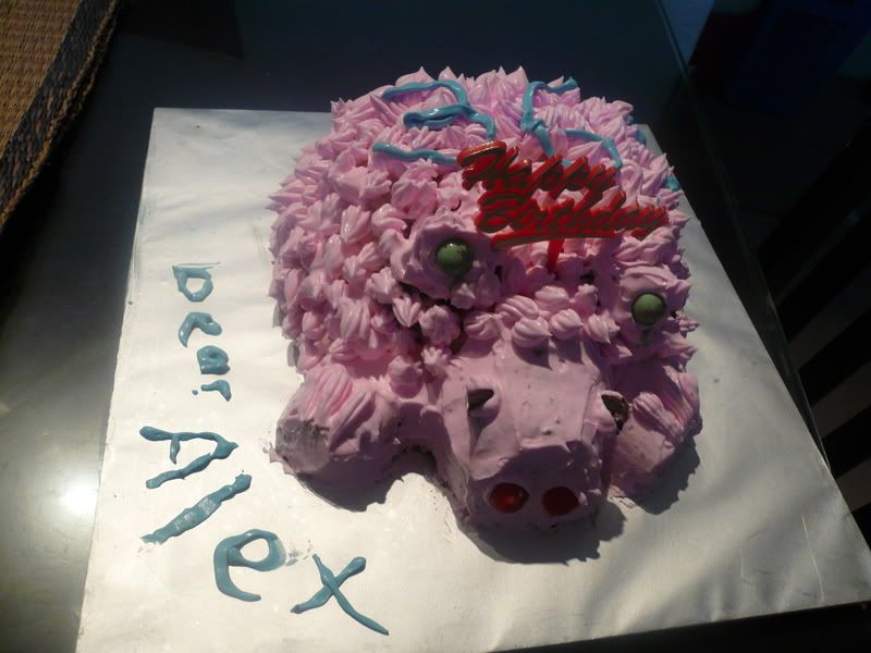 参考了韦妤的小猪蛋糕,我也心痒痒的弄了另外一个像箭猪的猪蛋糕。不过里面是鲜橙味道的巧克力蛋糕,还有外面的CREAM,我是先放一层CREAM CHEESE然后才加WHIPPING CREAM的。因为希望味道可以浓厚一点点。