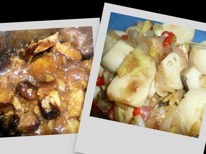 香菇呢,也不知道是不是叫香菇,好像是香菇的茎。放了姜和小辣椒清炒,