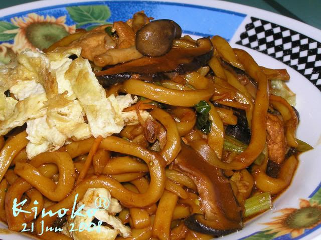 家里刚巧有乌东面,看到你煮的那么漂亮 ,决定了今晚就学你炒黑黑的乌东面。 (看起来真的很像福建面,我的favorite ) |
