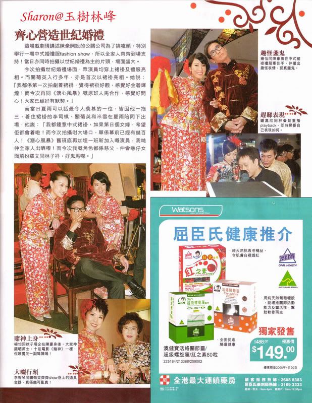 黎姿和珍姐,乐易玲,陈志云三边都挺老友,所以最不替她担心。签全约,拍珠光请假三个月都可以,公司又等她又力撑的,一复工还拿奖拿到手软,08 年不用累死累活拍剧,光大剧珠光就可以播大半年,人气实力又绝对没问题,可以以管理弟弟诊所为先,只需抽空拍拍广告出席出席活动,工作轻松赚钱又多,够受照顾够吃得开啦。 |