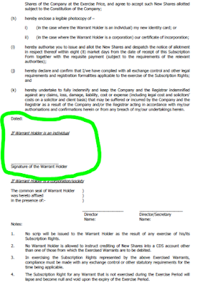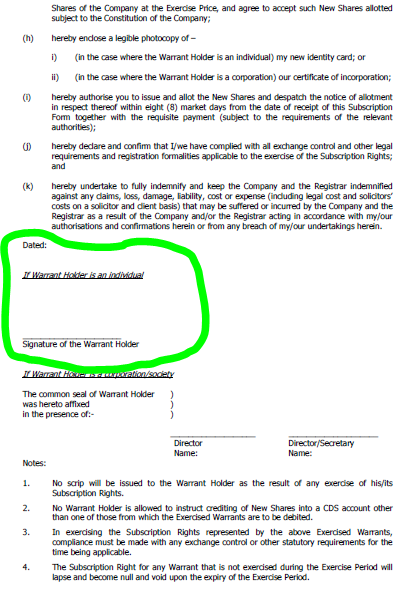 | 1. Details of Corporate Proposal | Involve issuance of new type/class of securities ? | No | Types of corporate proposal | Exercise of Warrants | Details of corporate proposal | Conversion of Warrants | No. of shares issued under this corporate proposal | 34,302,423 | Issue price per share ($$) | Malaysian Ringgit (MYR) 0.1000 | Par Value($$) (if applicable) |
