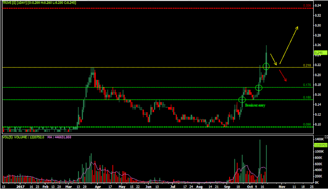 已经突破了的RM0.205~0.215已经成为短期内的支撑,股价需要守着这个区域才能有继续上冲的动能。整个图形就有如inverted head and shoulders的底部反转形态,只不过这个head横摆太久,有点太过平了。