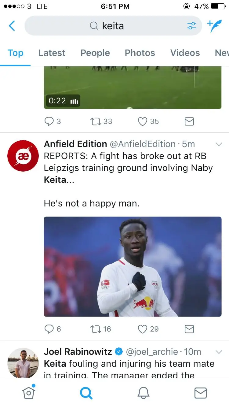 1. 'Coach ends training session after Naby Keita fouls his own team-mate and leaves him needing treatment'