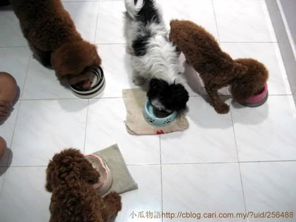 我来顶一下,那天三只小瓜和妞妞来 gathering 时我忘了拍照,多多越大越 handsome 了,佳佳很斯文,Miki 的尾巴好可爱。 |