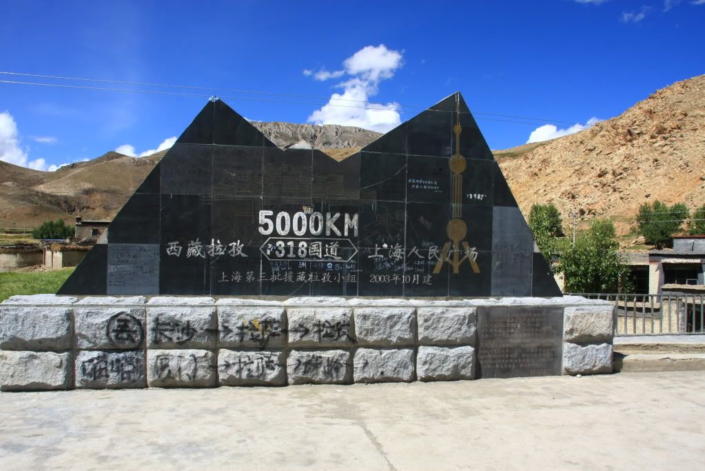 往珠峰的路出发了,这条路可以从上海到尼泊尔,还是一座5千公里的纪念牌给曼联四子看看.