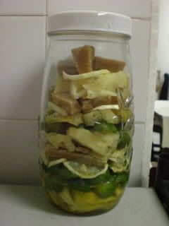 我第一次做木瓜的时候没去柠檬皮,蛮苦的。第二次开始就去皮了。。。  |