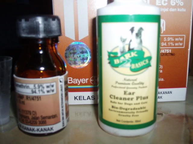 这个bayticol的效果很好,星期日肥豆阿girl洗澡过后我就是用这个来杀跳蚤,刚刚我检查阿girl的头部和颈部时,都没发觉有跳蚤。