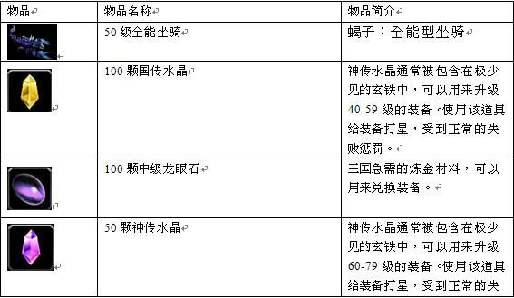 终极抽奖活动的奖品 (所有奖品将被设定为绑定状态)