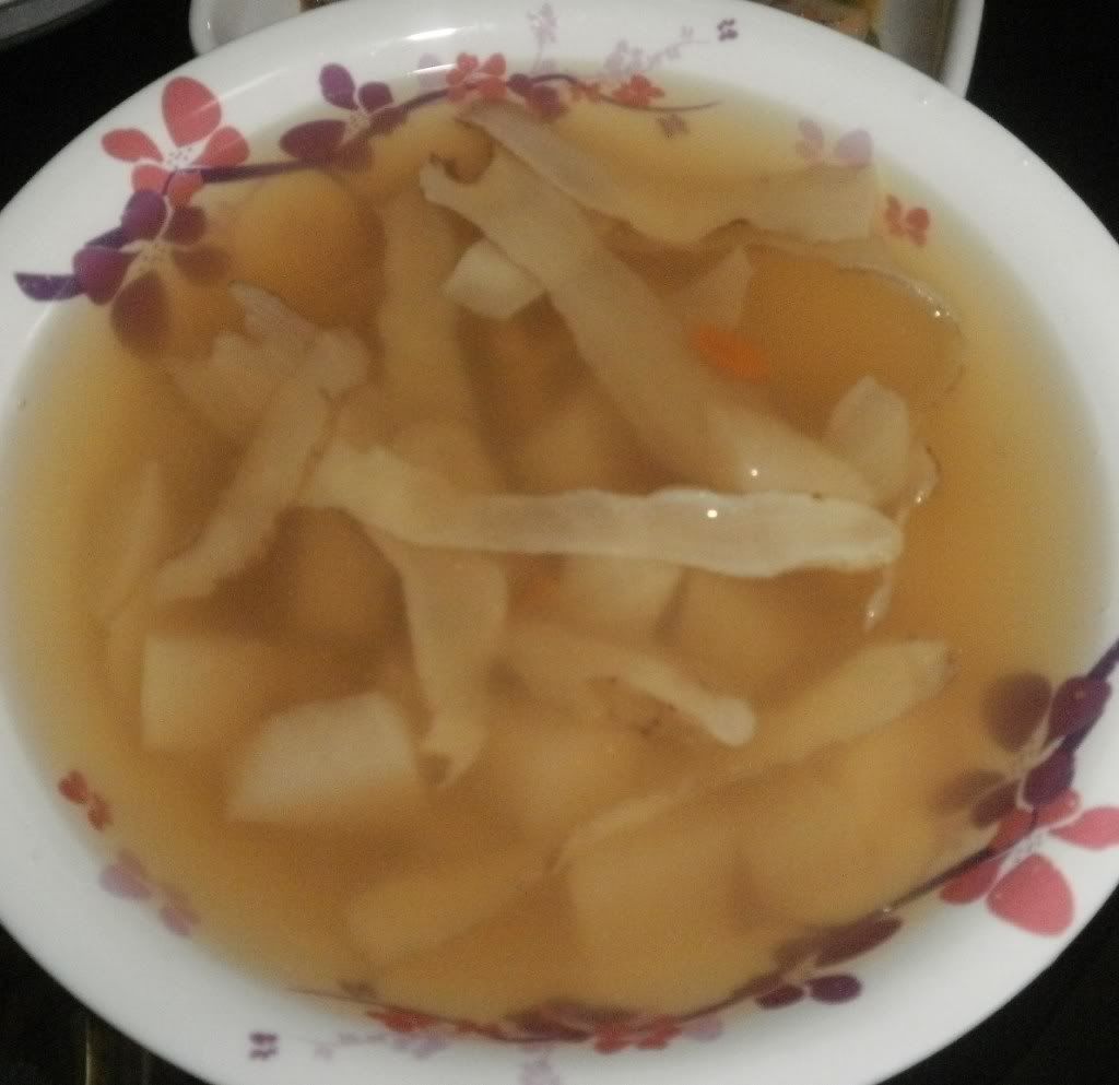 | 玉竹白萝卜汤我每次都拿來做火涡湯底。。。很甜。。。 其實那椒盐虾。。。就是吃它的咸味。。。而蝦肉根本沒有咸。。