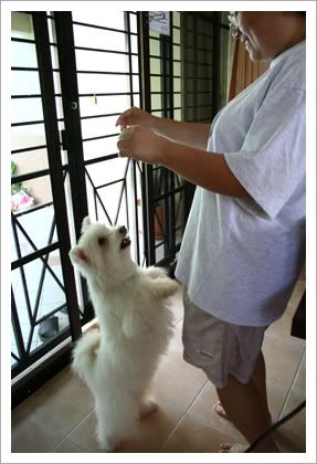 过后的阿moo就慢慢的比较冷静了,很乖的待在我身边,或缓缓的跟着我的脚步走。