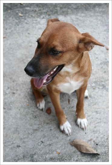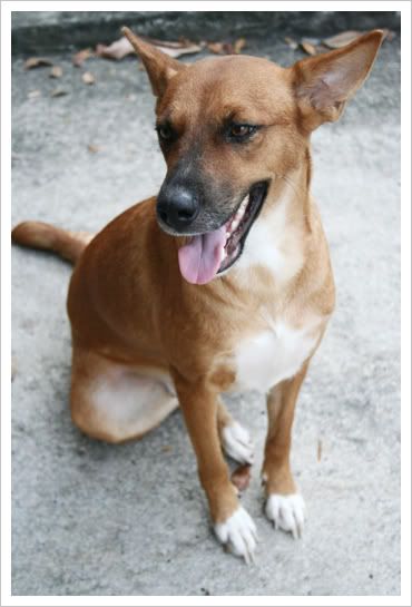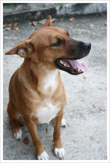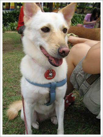 她的毛色很特别!尤其背后好像多一圈黄色的毛!现在她脱毛期...感觉整只狗变小了... |