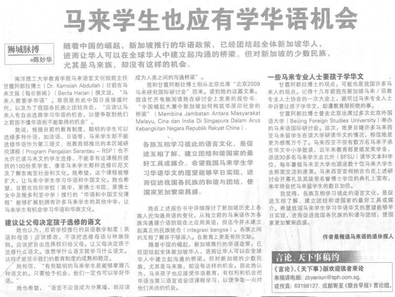 其实,真正思想开通的马来人是会去学中文的(但不意味着放弃他们的母语)