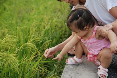 看稻田的第二张照片,萱萱很厉害摆pose哦。。 |