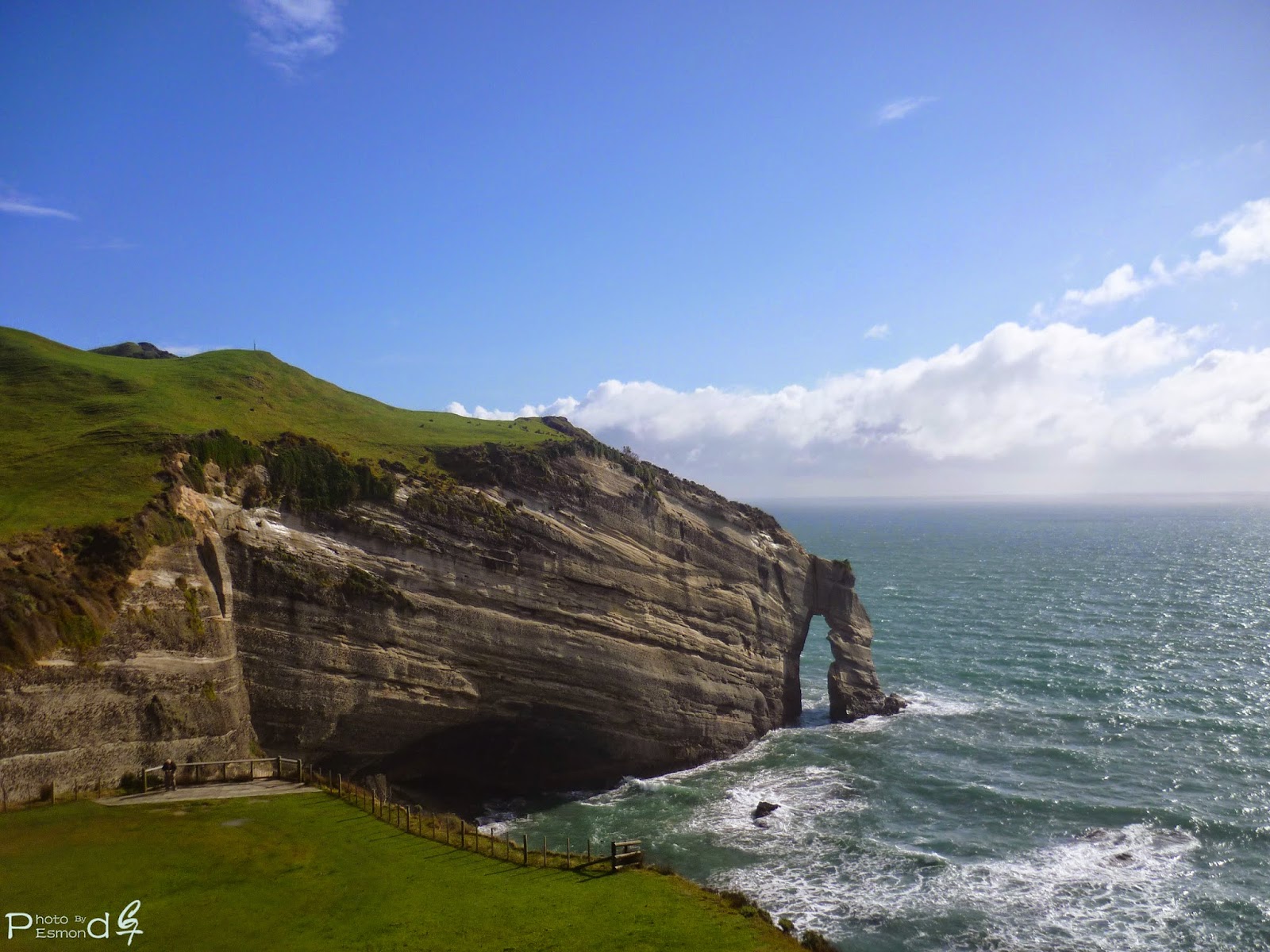 幸好,在抵达Cape Farewell,天气转晴,可以看到大大的太阳哦!!!Cape Farewell的景色不错哦!!!但大家可要小心一些,这里的风蛮大的,不要太靠近悬崖哦!!!Cape Farewell是开放给公众的,如果有车的朋友不妨自己来这里走走看看。Cape Farewell的名字自然和我们大家熟悉的Captain James Cook有关系,这个地方就是这位船长命名的。这位Cook船长还真的很忙一下,基本上纽西兰蛮多地方都是被他命名或者和他有关系。