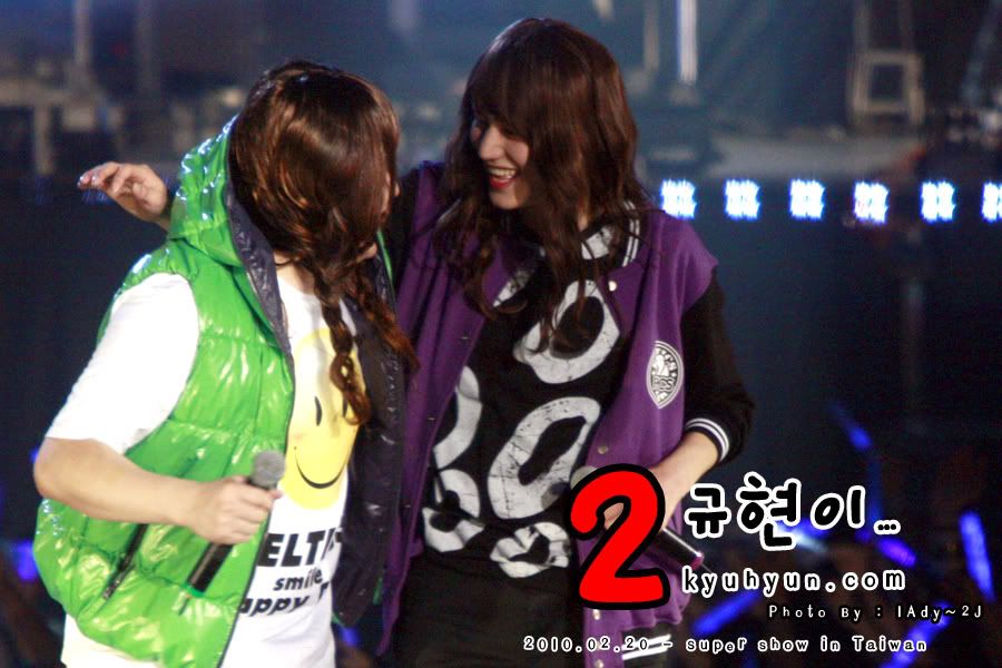 至於特别为台湾所追加、翻唱同门师妹「f(x)」歌曲的桥段,第二天依旧笑果十足,神童逗趣的在台上翻滚到连假发都翻掉,而希澈、厉旭、东海等成员则超融入女装打扮,不断装可爱和三八,其他成员还要扯银赫的假发,搞笑演出让全场大爆笑,另外始源的肌肉秀连发也是令粉丝眼睛大吃冰淇淋,他也特别以「好哥哥」来介绍赶来欣赏的好友吴建豪。