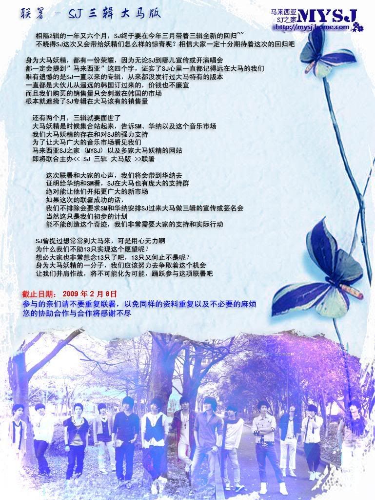 **请各位大马妖精们到MYSJ论坛里回帖留下联署所需的资料,又或者email至my.sj@hotmail.com给我们都可以。。谢谢了