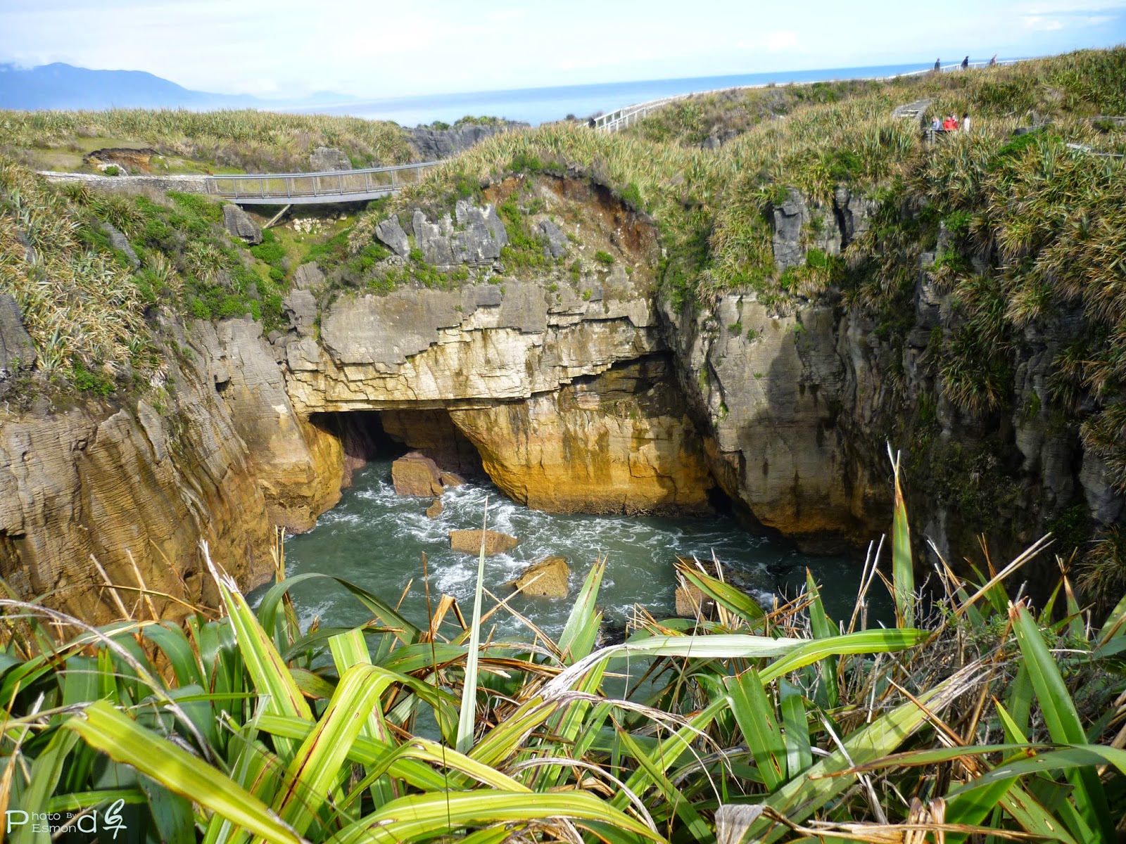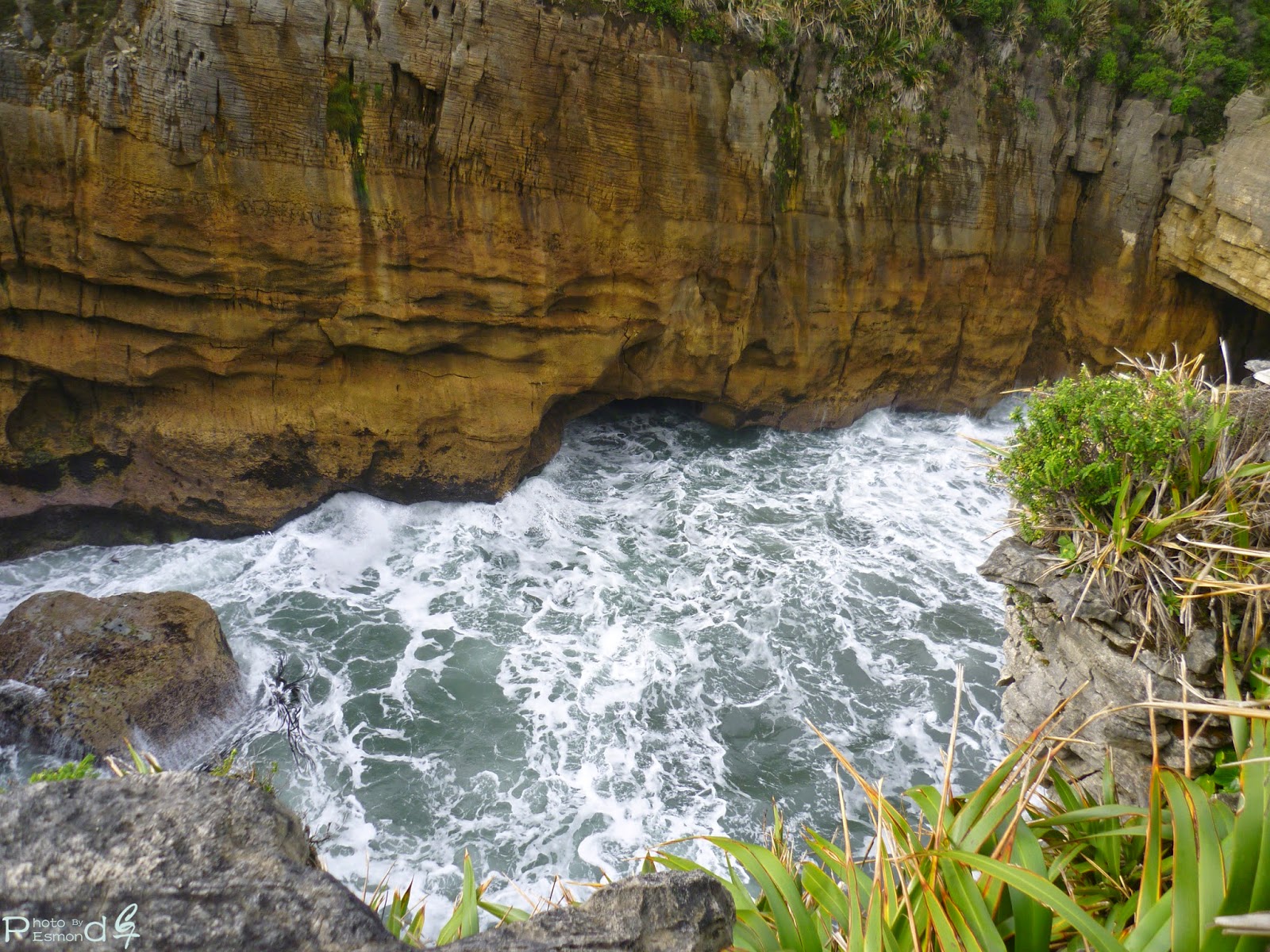 Punakaiki是一个位于Westport和Greymouth之间的旅游景点。这个景点是以这些看起来很多层的石头闻名。除了这些一层层的石头,这里还有一个很有卖点的特色,那就是Blowholes啦!!!Blowholes就是当海浪涌入合适的洞穴内,造成洞穴内的压力增加而形成的海水喷发。Punakaiki这里也有数个Blowholes,但是每天也只有遇上当天的涨潮才可以形成,所以可不是每次来都可以看到哦!!!