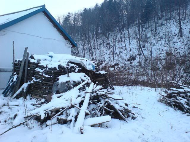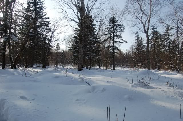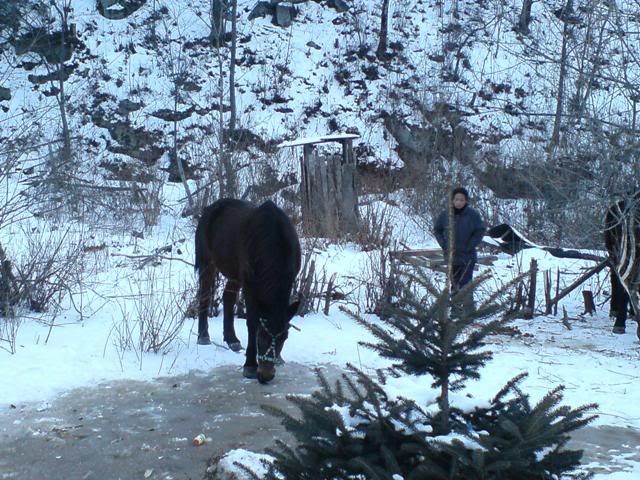 大約四個多小時的車程中,我們經過五常再再往前走就到了東升林場。東升林場和哈爾濱有很大的差別。在哈爾濱盡管是冬天但是還看不到滿地的雪,但是在東升林場就不同。四周都是雪。在屋頂上,在樹葉上,在材堆上都被雪覆蓋了。