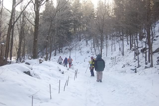 在下山的路程中就轻松的多了,食物清了,下山也没像上山那样吃力。但是我们频频跌到,因为山路很滑,再加上下山不容易控制步伐,所以一直跌到。有时后面的人跌到,推倒前面的人,一个接一个,结果就全部人跌在一堆。但是雪是柔软的,跌到也不会疼,所以大家也跌的不亦乐乎。