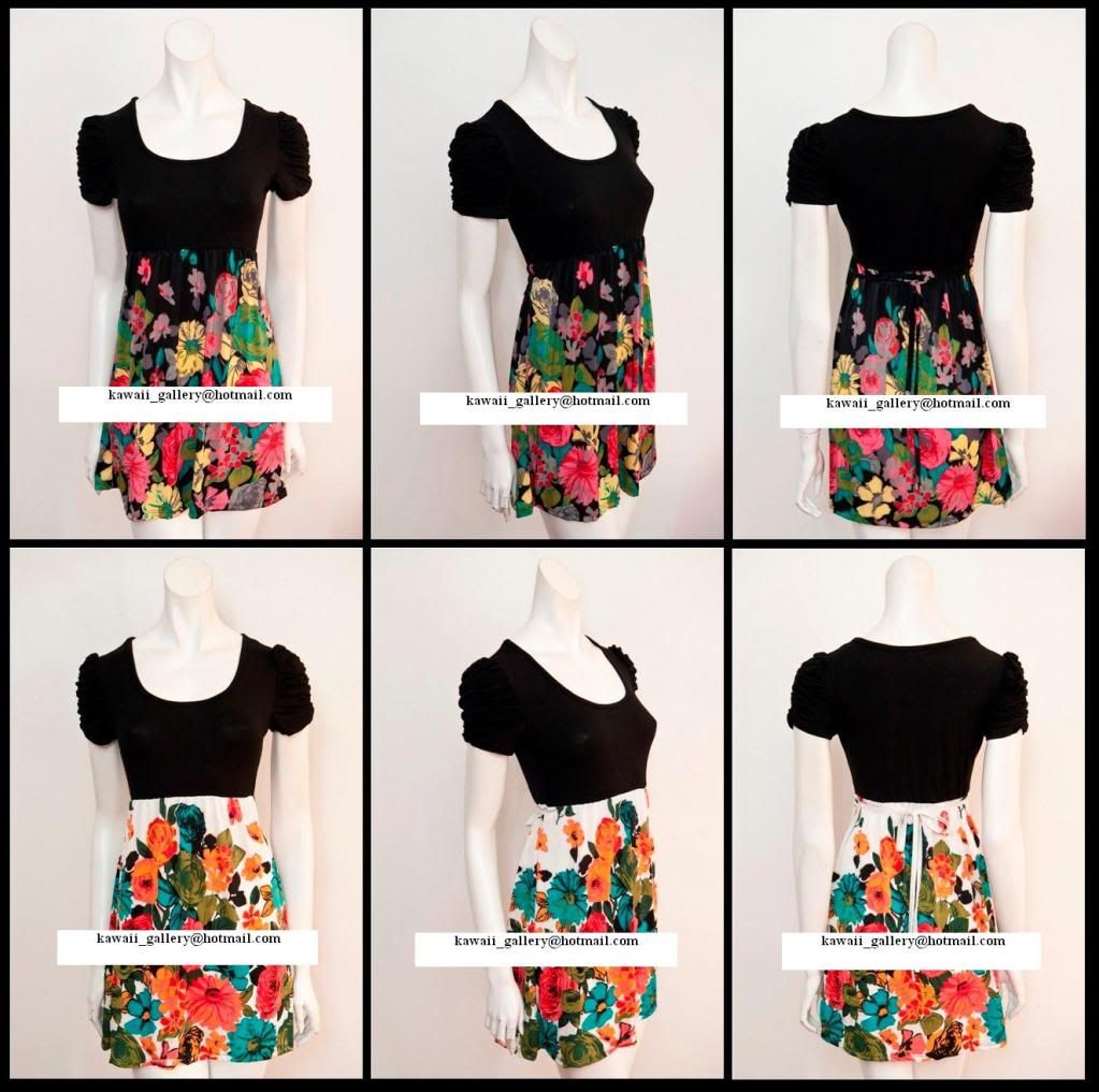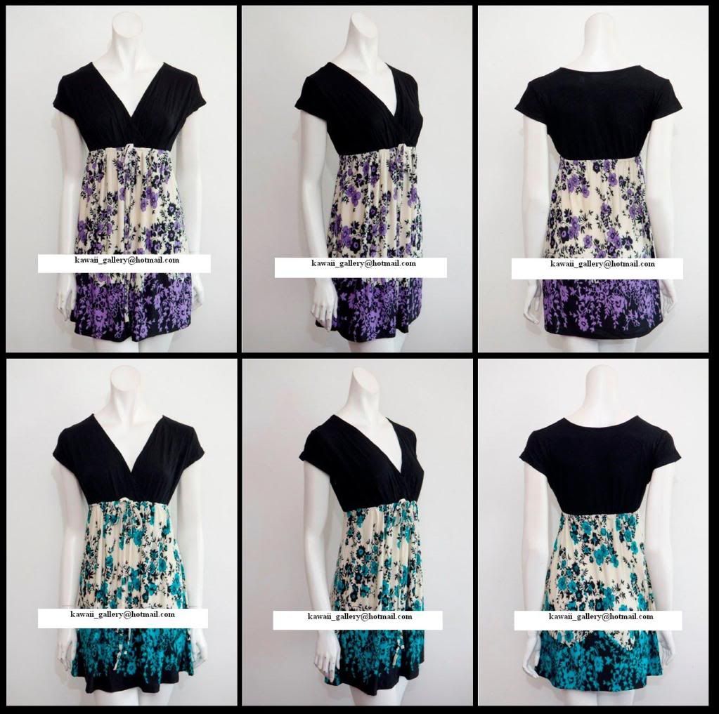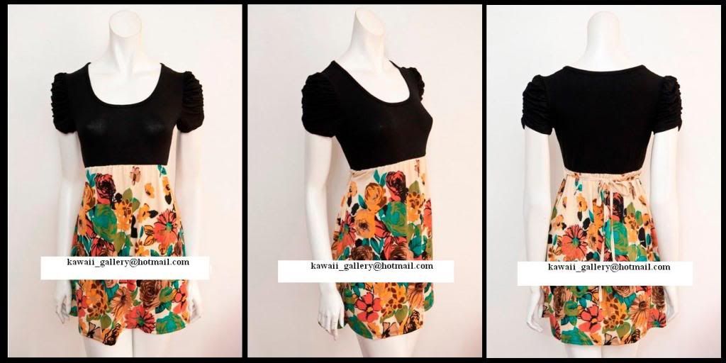 13) K21. Gathered sleeve dress match with lycra floral bottom; back tie a sash ~ RM39