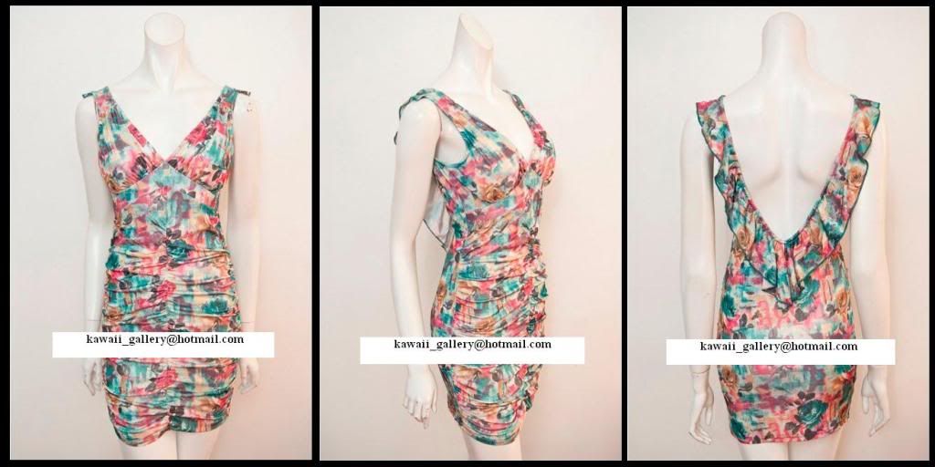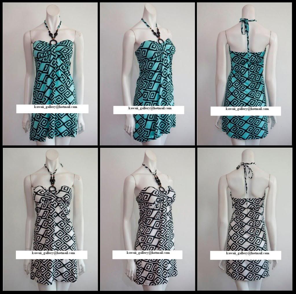 5) S5. V Neck Diamond. Cross back; 3 colour matching print dress; come with inner lining ~ RM56