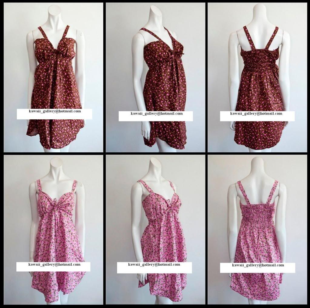 2) V shape simple floral dress ~ RM36 - Colour : Pink