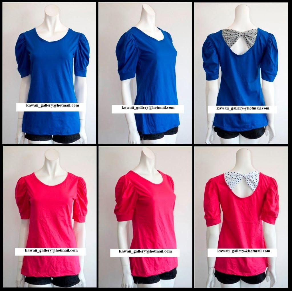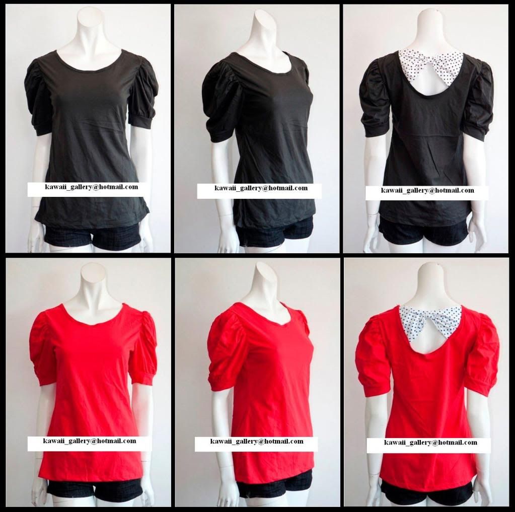 12) R13. Fashionable gather sleeve; back bow simple plain tee ~ RM29