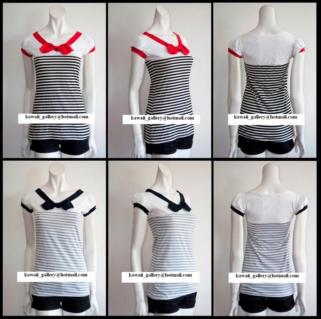 9) G27. Stripey top; butterfly sleeve; front come with a bow ~ RM28