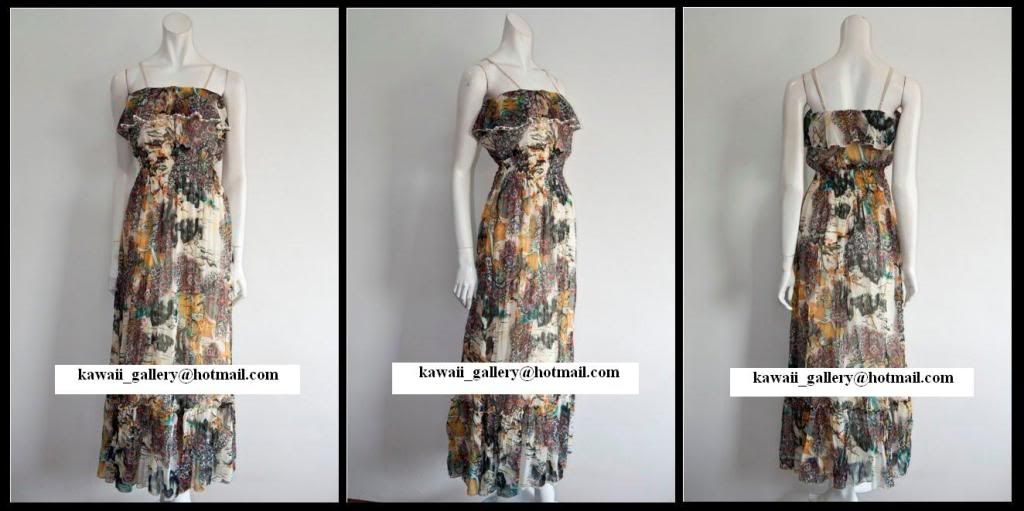 3) S3. Colourful print sleeveless maxi. Come with big and small pearl ~ RM72