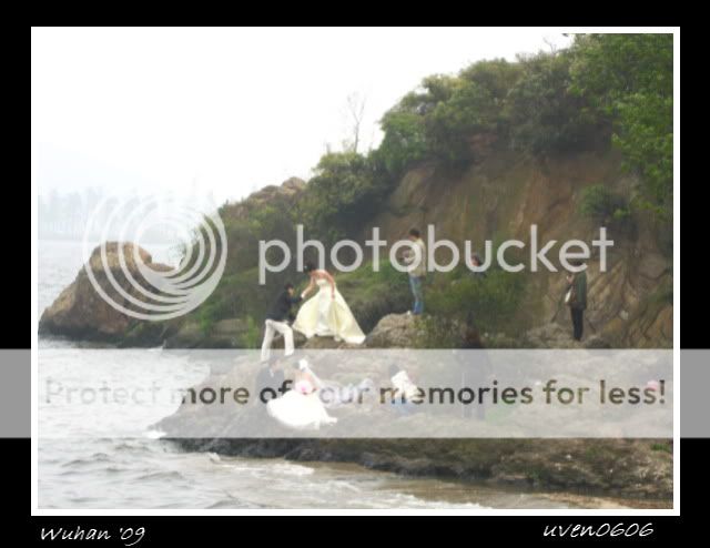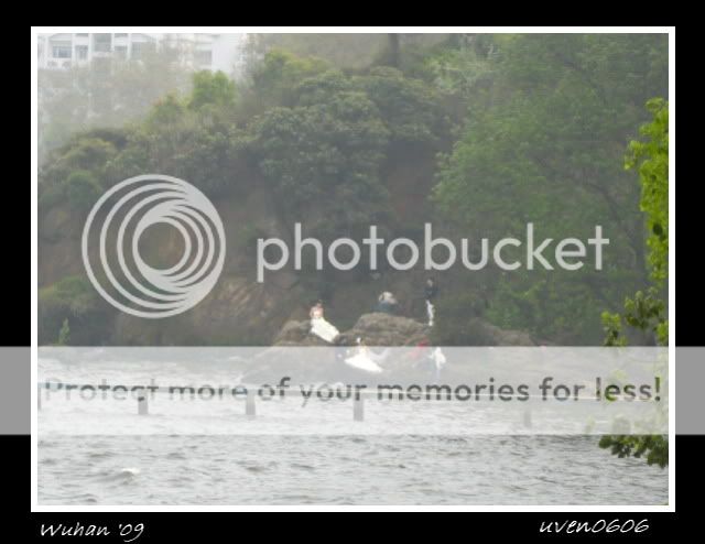 那儿也没什么看了,就再坐公交车到东湖的另一方。东湖太大了,要走很远才到另一边。我们就去靠近武汉大学后门那一边。然后就顺便参观武汉大学啦。在那边,我们看到有几对的新人在那儿拍婚纱照。哇,天气那么冷,那些新娘穿着婚纱拍照,真是爱美不要命噢。
