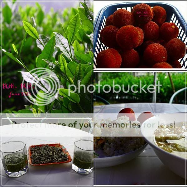 杭州第一天 今天天气不是太好,一会儿下雨,一会儿晴天。由于是旅游季节,到处都是大巴士,人山人海!在西湖景区里,可以看到很多人租脚车在景区内逛。在杭州,很多地方都可以租脚车的,价钱如何,我就不知道啦,在这样的天气下骑脚车,还不错的,可是我们都是懒人,所以就驾车到景区,然后靠脚慢慢走吧。 杭州西湖位于浙江省杭州市西部,面积 5.64平方公里,最大深度6.52米,平均深度1.21米。原为古海湾,钱塘江泥沙淤阻后形成。西湖不但独擅山水秀丽之美,林壑幽深之胜,而且还有丰富的文物古迹、优美动人的神话传说,自然、人文、历史、艺术,巧妙地融合在一起,是中国著名的历史文化游览胜地。(取自“互动百科”) 早上去了“花港观鱼“,这里人很多,天气不是太好,所以没拍到照。 我们沿着湖的南部,向北部走去,大概用了一个多小时吧。由于刚下完雨,所以天气还凉凉的,只是朦朦的,不适合拍照。 花港观鱼是西湖十景之一,位于苏堤南段以西西里湖与小南湖之间的一块半岛上。据史书记载,花家山麓有一小溪,流经此处注入西湖。因沿溪多栽花木,常有落英飘落溪中,故名“花港”。南宋宫廷画师马远作西湖山水画,花港观鱼因而得名。有诗题曰:“花家山下流花港,花著鱼身鱼嘬花” (取自“互动百科”)、 花港观鱼之后,我们开车到这里附近的龙井茶园去。这个小茶园,是属于其中一个农家的。在这里,我们可以吃饭,喝龙井茶,聊天。由于我们都不饿,所以叫了2杯茶喝,一杯要RMB 20呢!不过呢,可以在这里坐上整天,还有瓜子吃(如果你喜欢的话)。这里的空气很清新,四处都是茶园。聊着聊着,我们也饿了,叫了碟蛋炒饭+蛋花汤,RMB20.这蛋炒饭还煮得不错,农家味道。J 图中红红那个东东,是杨梅来的。现在是杨梅季节,到处都可以看到有人在卖。这一篮,要了我们RMB 50,肯定是被砍了,可是好吃,我们也就算了。在这里喝茶聊天,真是人间一大享受,没有城市中的喧闹,只有鸟语“茶”香,空气也很清新。本来想要到茶园里去走走,顺便采采茶叶,可是天空不作美,突然下了大雨来,很扫兴!