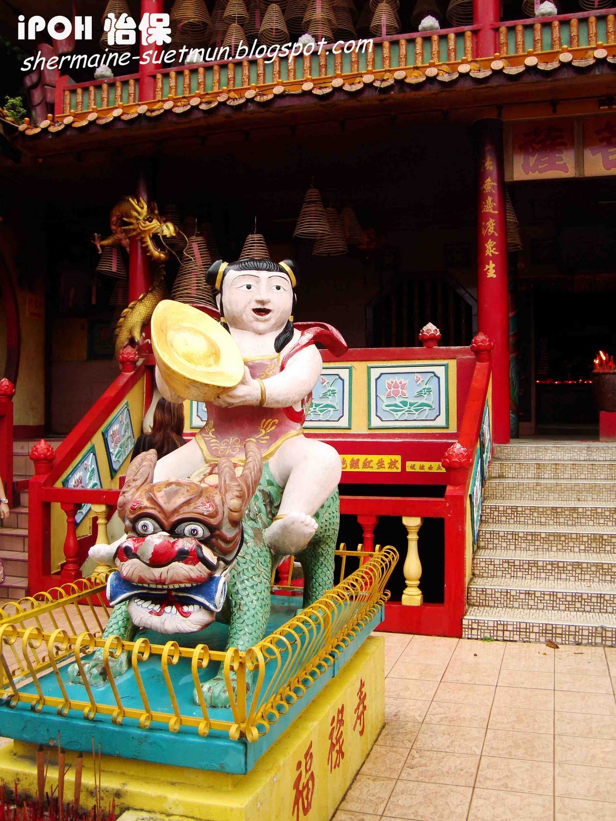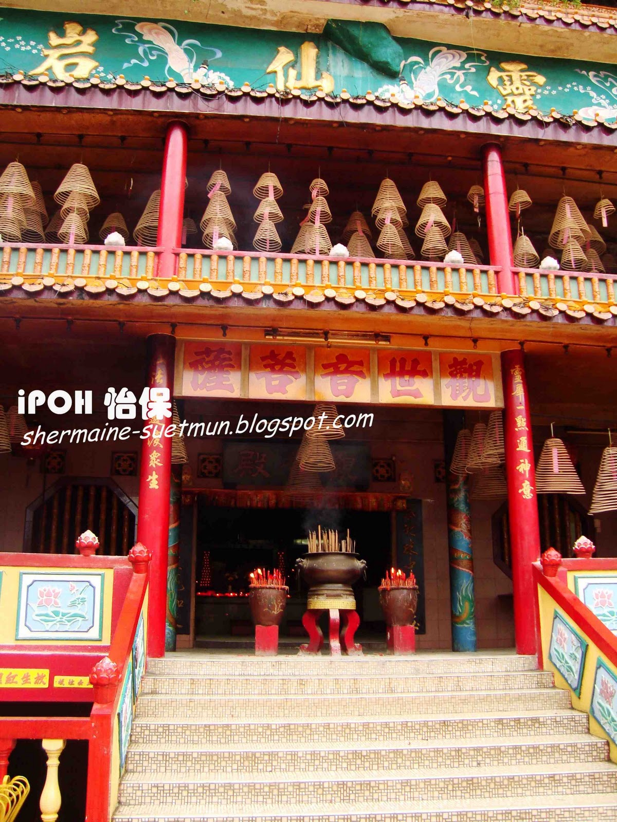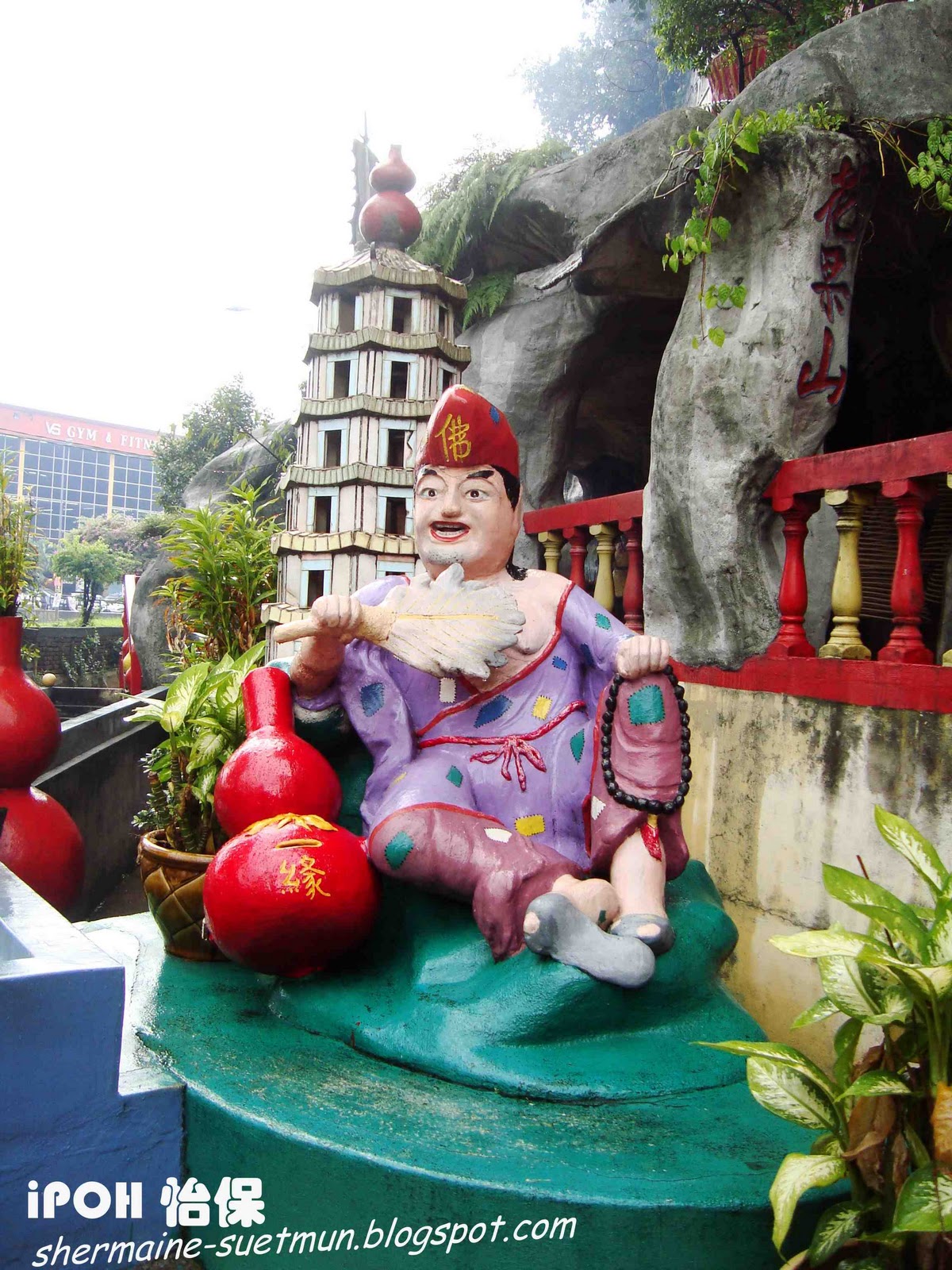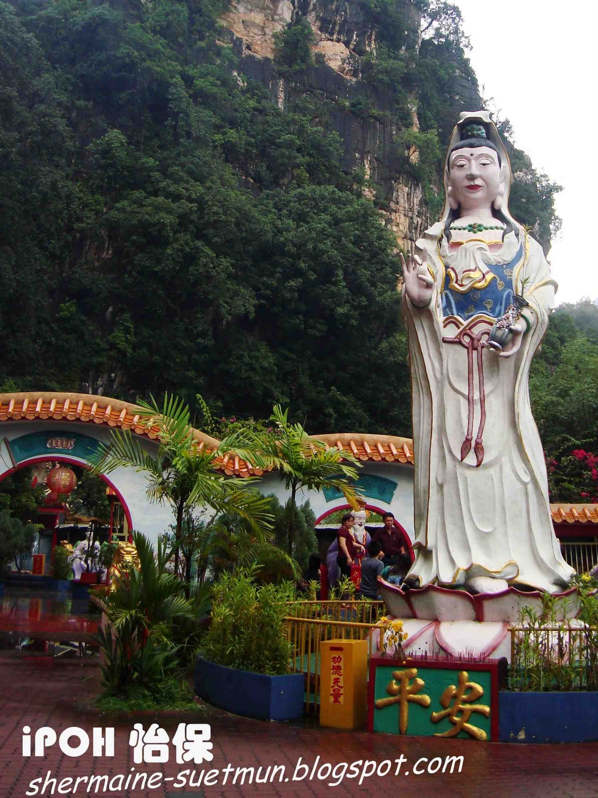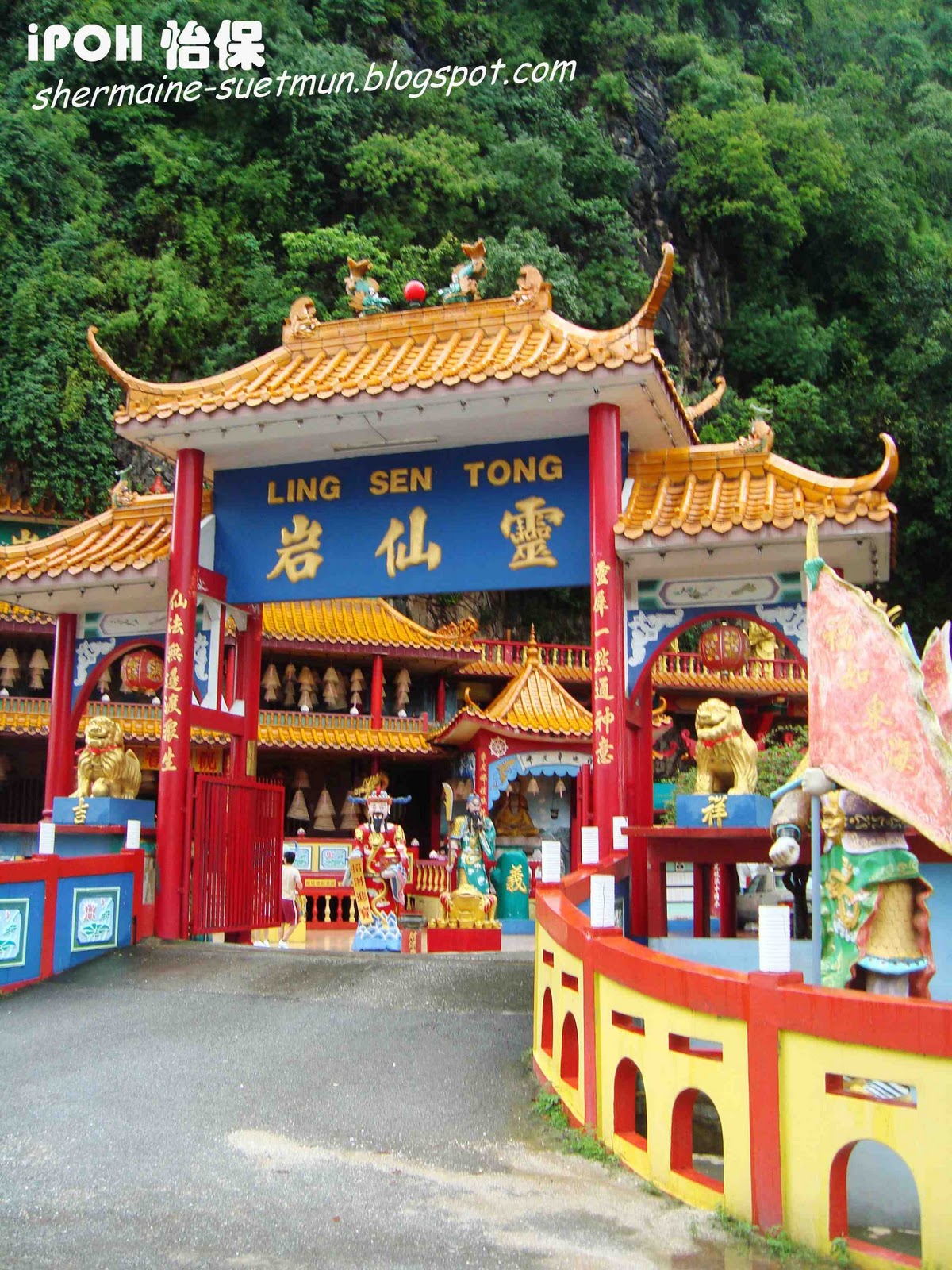 第九站 灵仙岩 LING SEN TONG 从凯利古堡Kellie's Castle回来后,天空的雨已经停了,经过灵仙岩,大家看看手表,5点整,时间还在允许,我们就到转进去参观看看,只好等下才去喝白咖啡~~ 2008年,第一次来怡保的时候有在门口经过,当时去了南天洞,出来后已经快6点,所以灵仙岩就关门不能进去了,今天可是我第一次参观灵仙岩LING SEN TONG~~ 灵仙岩LING SEN TONG在1967年由罗志民创立,当时这里一片荒凉,岩前峻峭斜璧,直伸参天,环顾四周一片宁静,心旷神怡,有如灵圣仙人之地。后又发现岩前有天然泉眼,冒出清泉,长流不尽,因此取名灵仙岩