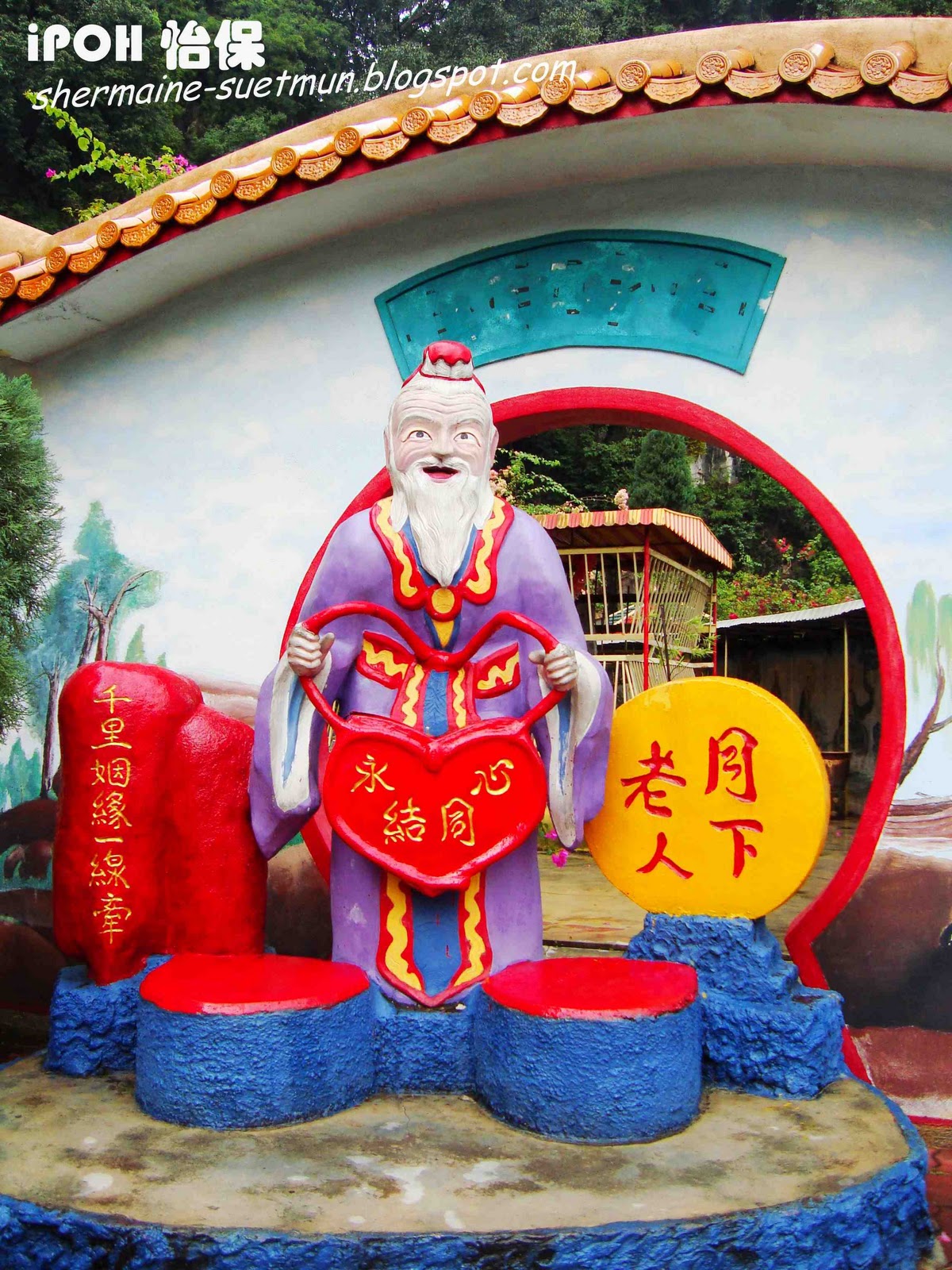 有许愿池,寿星公、月老、龙王、孙悟空、猪八戒,