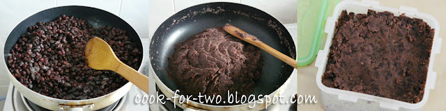 哈!只是紅豆paste啦...紅豆煮烂后倒掉汤水,然后炒微干,再加糖或蜜糖就可以了! |