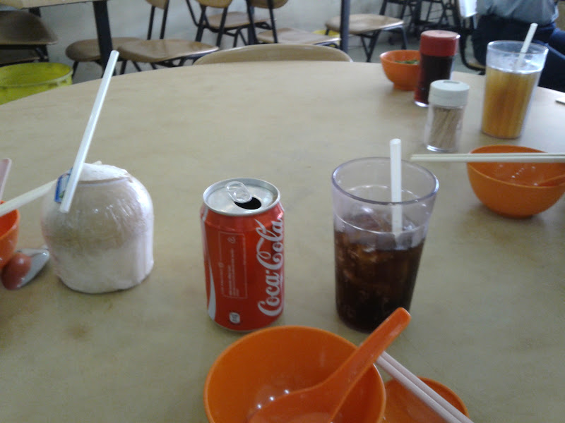 这是沙梨水,叫了一粒椰,五杯沙梨水,6个白饭