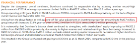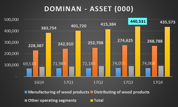 DOMINAN的资产也从RM383.75 mil增长到RM435.57 mil,NTA也从RM1.37增加到RM1.48, Q4的资产低于Q3是因为Depreciation所导致。