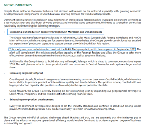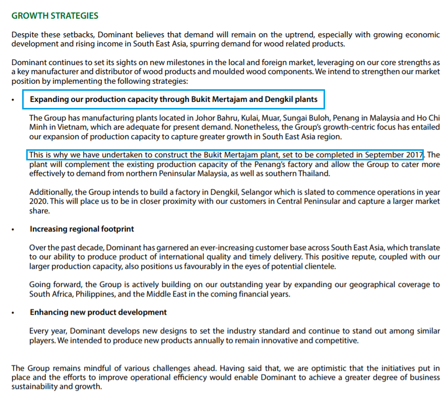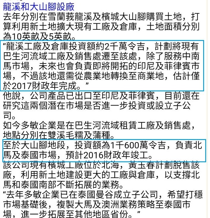 此外,公司除了积极进军海外市场,他们也在过去耗资RM3,600万在Bukit Mertajam以及Dengkil 设立产房以增加产能。
