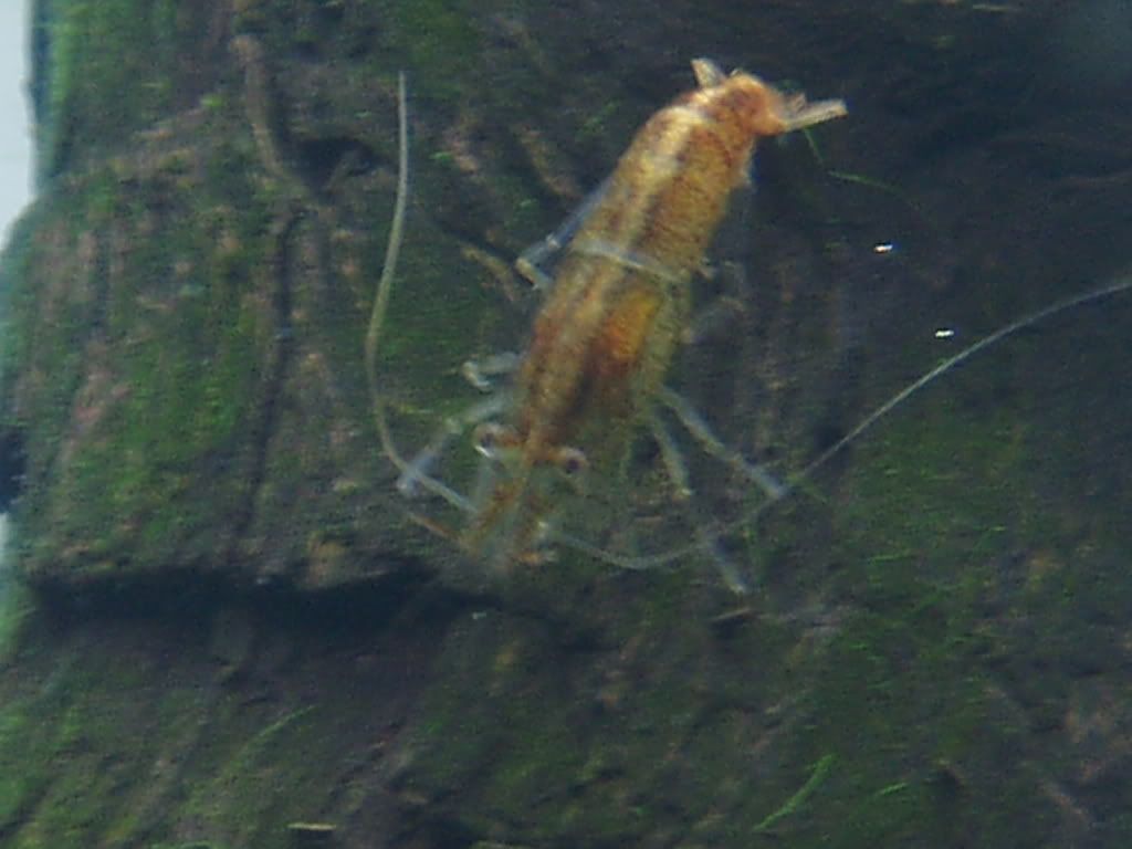 我拿这虾和樱桃虾比较了很久,发现它跟本不一样。它带有巧克力色而不是红色。身形和头部都和樱桃不一样,尤其是它的眼睛很突很大。