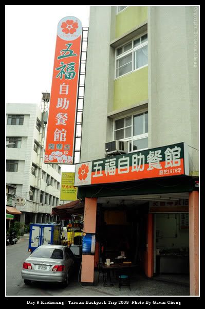 后来我们在一间叫“五福自助餐馆”凑合吃了就算,