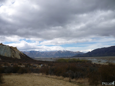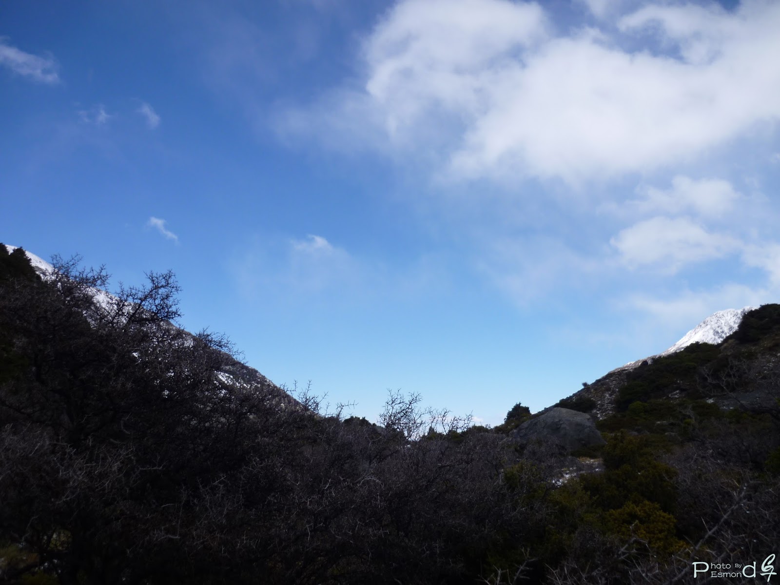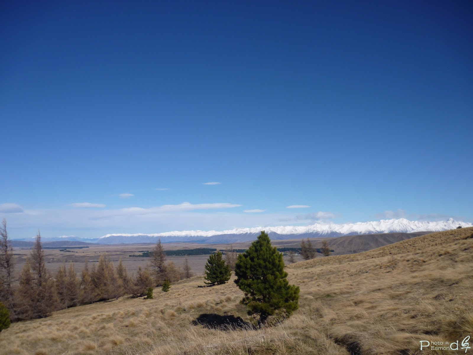 慢慢的走上山,走的越高,沿途的松树就越少,渐渐的,我就走出松树林了。这是在附近已经没有什么树木了,虽然少了没有叶子的松树,但却有着漂亮的雪山在远方哦!!!过了松树林后,一路走上山都可以望到远处那几座壮观的雪山。还是老话一句,纽西兰的风景,不管怎样看或拍,都真的很漂亮,尤其现在是冬季,南岛沿途的雪山景色真的是很漂亮。