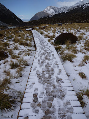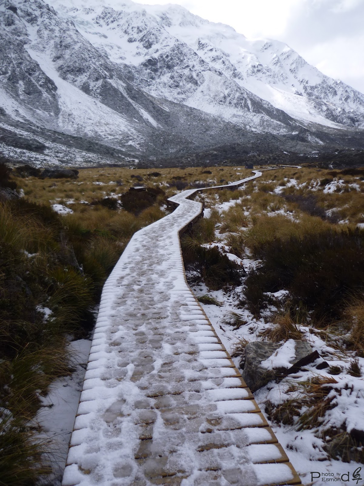 Hooker Valley Track不愧是Mount Cook最热门的健行步道,这个步道一路上的风景还真的蛮漂亮,尤其是下了雪后更是一绝,但步道的难度也因为下雨下雨后提升不少,对于部分旅客来说,Hooker Valley Track可不是一个可以简单完成的步道哦!大家可要留意哦!