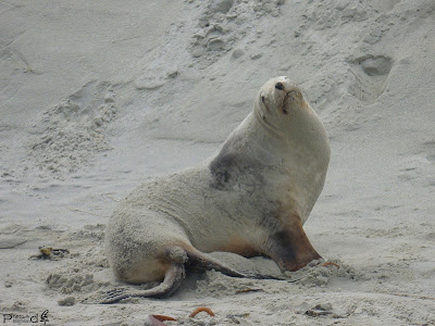 我们得到的结论应该是那只公海狮前去勾引不知是女儿还是妻子的母海狮,然后被旁边那只不知是爸爸还是老公的公海狮赶走。不知怎地,我觉得我和Ruth姐还真的蛮无聊的。。。